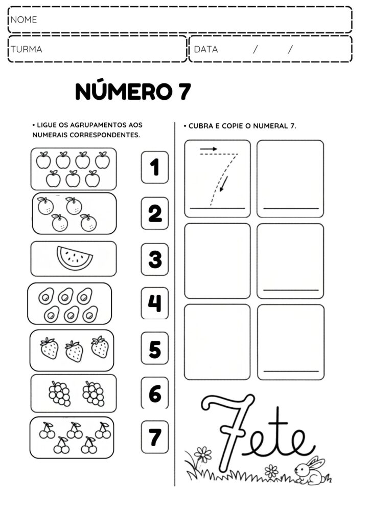 Essas atividades foram desenvolvidas com base no Campo de Experiência: Espaços, Tempos, Quantidades, Relações e Transformações, que estimula a criança a explorar números, quantidades, sequências e relações presentes no cotidiano.