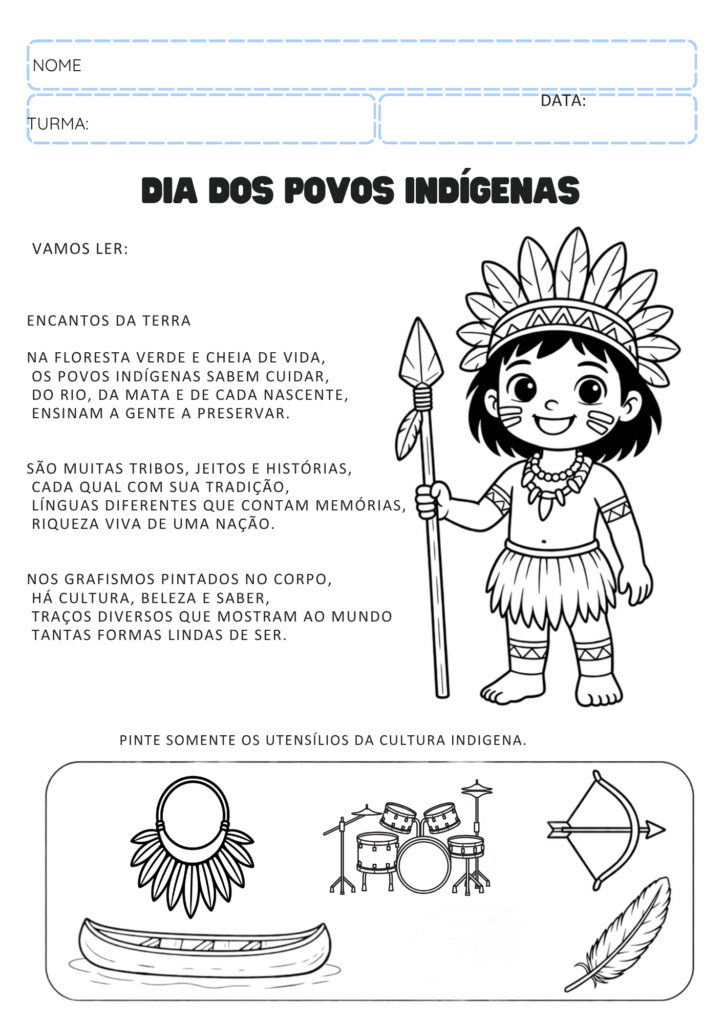 Dia dos Povos Indígenas: Atividades para Imprimir e Trabalhar na Educação Infantil