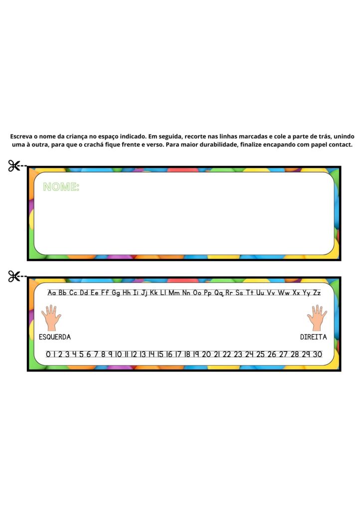 o crachá de é um recurso simples, mas extremamente poderoso no processo de aprendizagem na Educação Infantil e nos anos iniciais do Ensino Fundamental. Muito além de identificar o lugar da criança, ele contribui para o desenvolvimento da autonomia, da leitura e da construção da identidade.